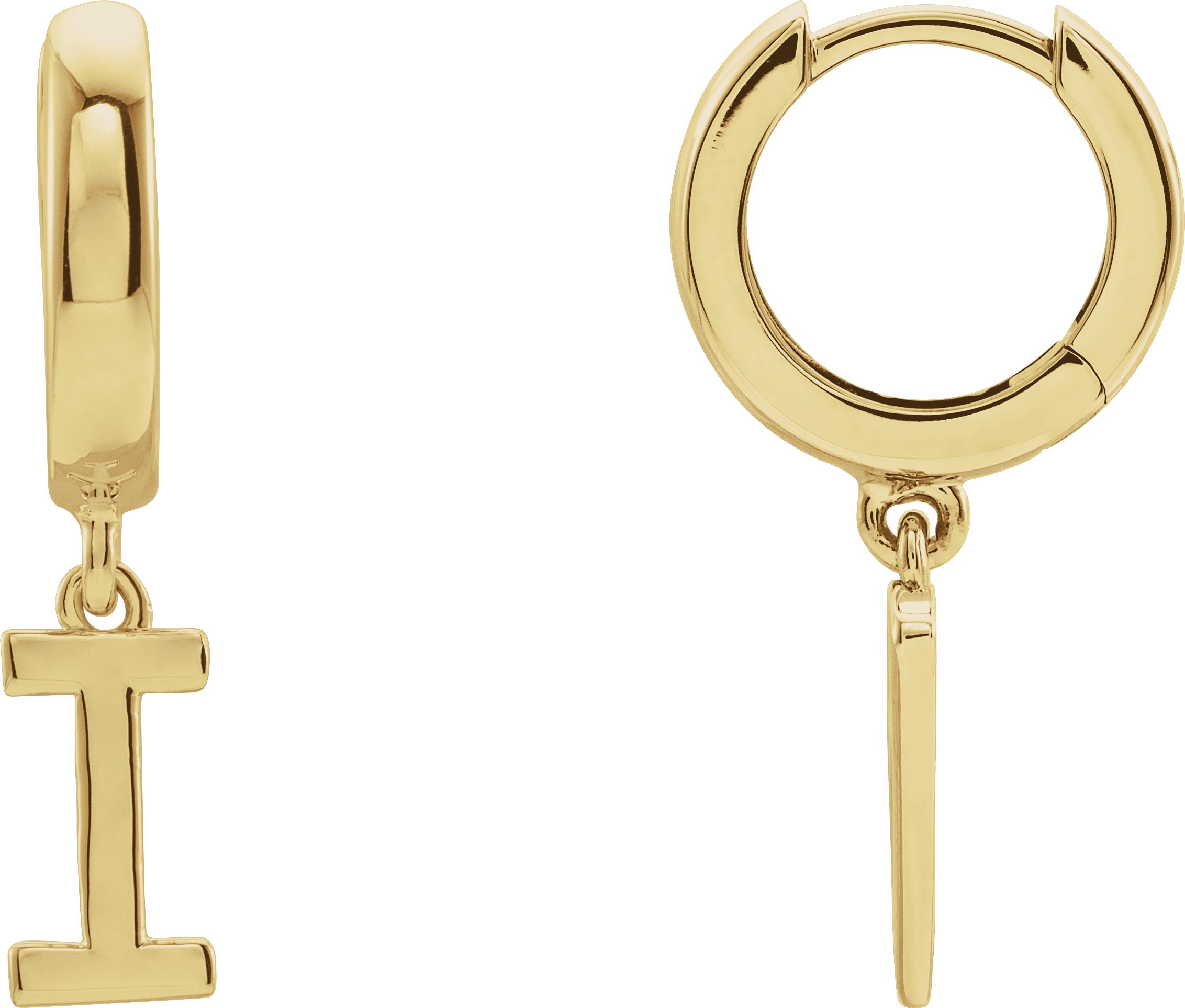 18K Yellow Single Initial I Earring