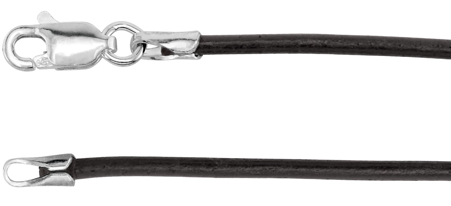 2 mm Black Rubber Cord Necklace with Sterling Silver Lobster Clasp Ref 700155