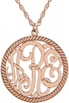 25mm 3-Letter Block Monogram Necklace with Rope Border