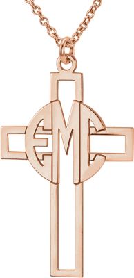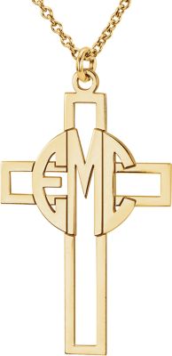 3-Letter Block Monogram Cross Necklace. Dimensions: 29 x 19mm.
