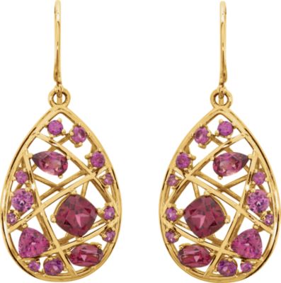 35.6x16.1mm Rhodolite Garnet Nest Design Dangle Earrings Ref 85697