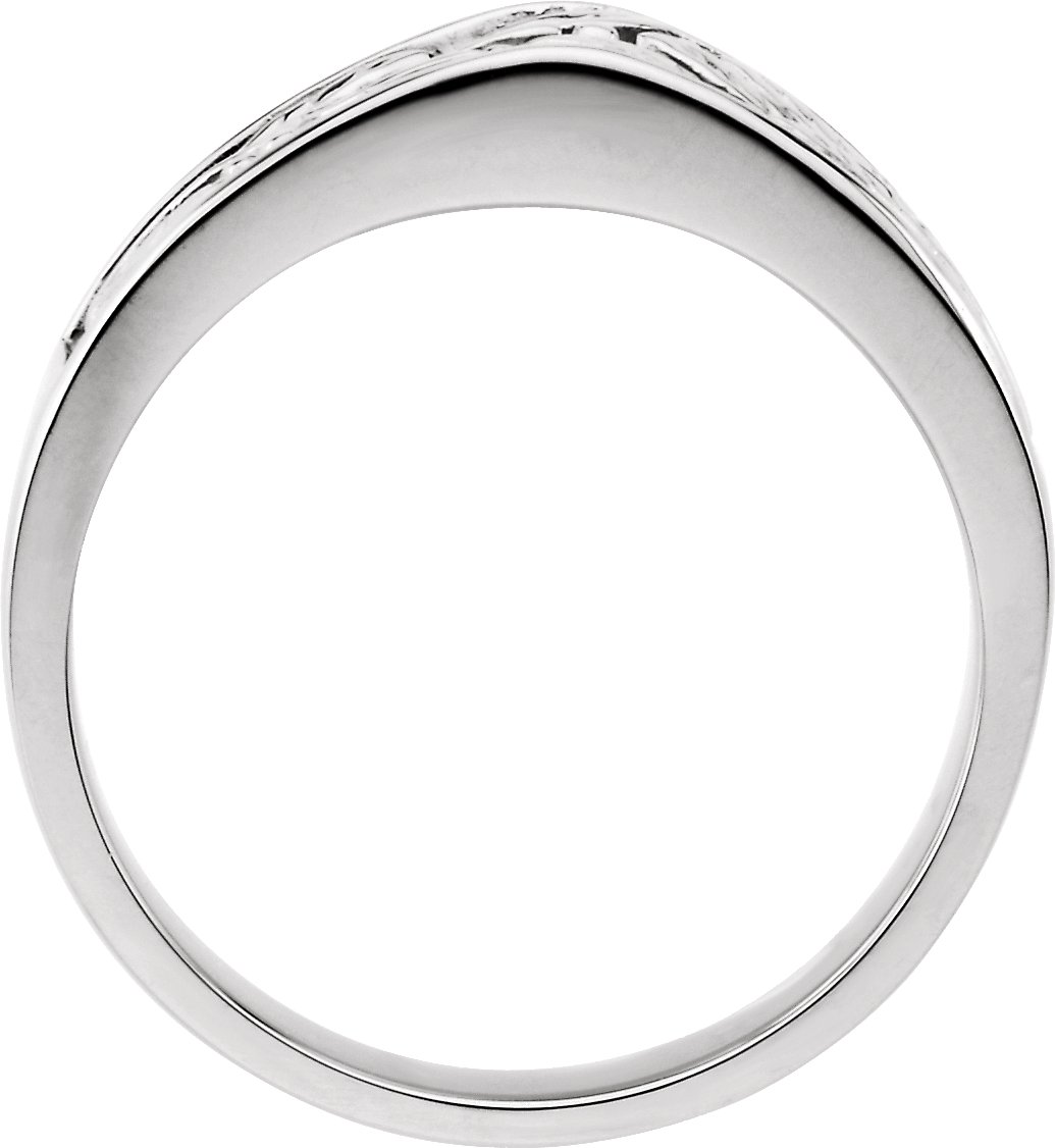 6.5 mm Men's Tapered Leaf Design Band. Platinum.