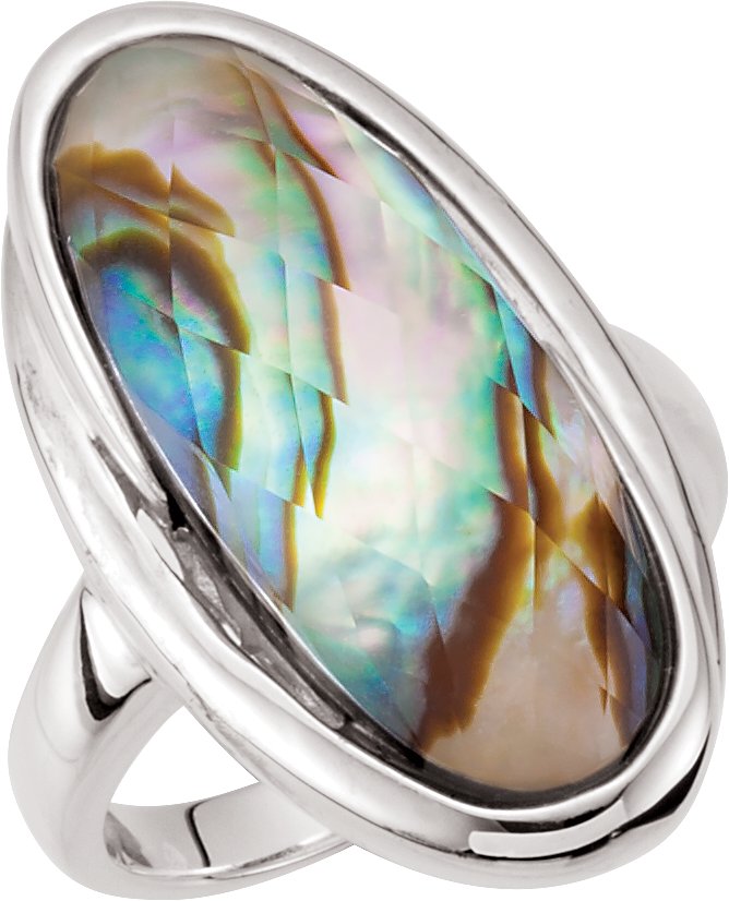 Abalone Doublet with Checkerboard White Quartz Top Ring