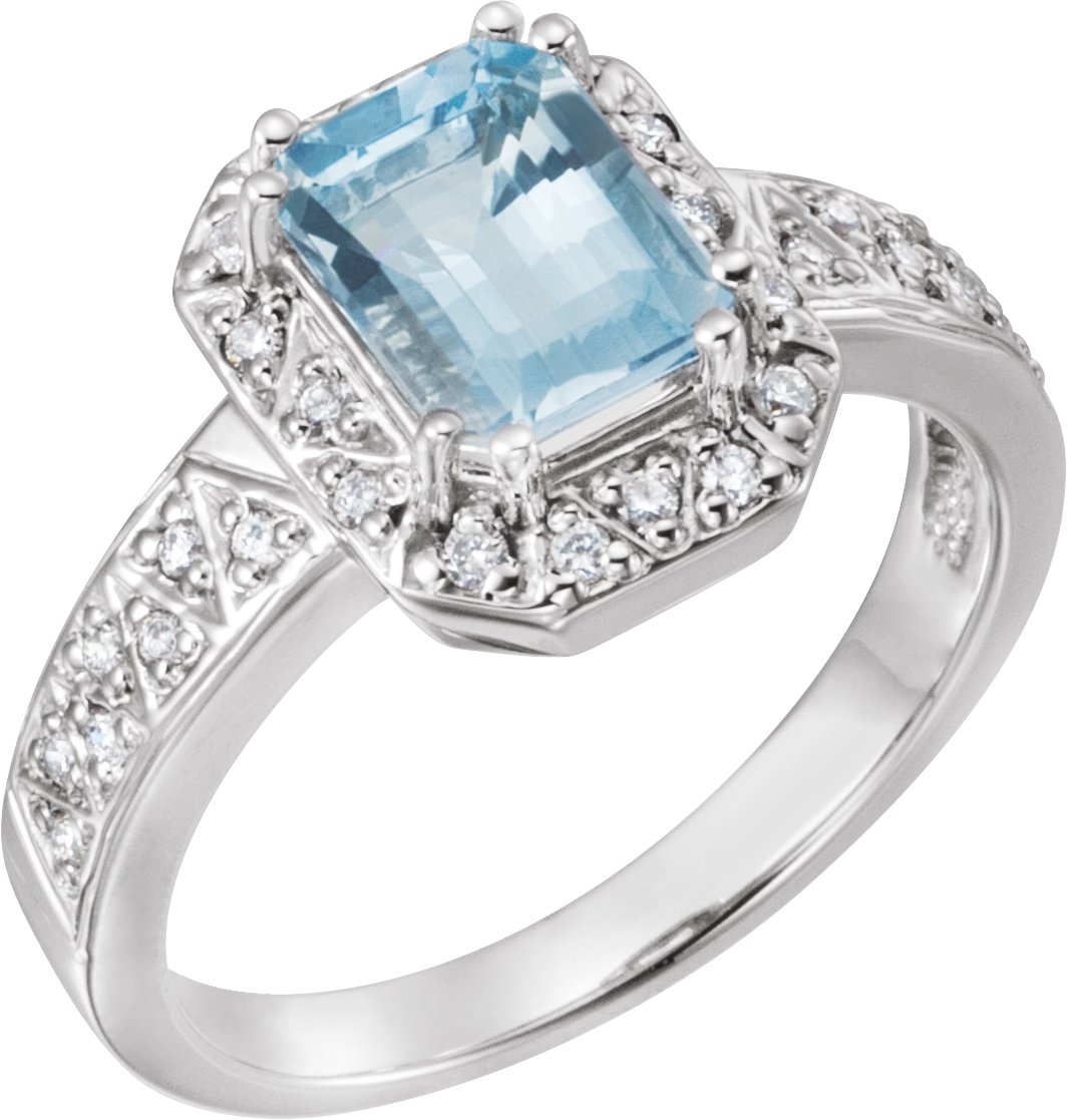 Aquamarine & Diamond Halo Style Ring