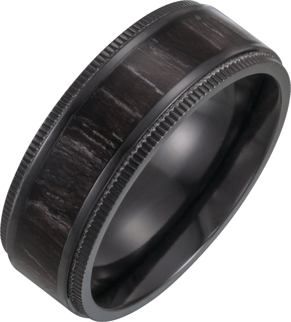 Black Titanium 8 mm Coin Edge Band with Wood Inlay Size 10.5 Ref 15068049