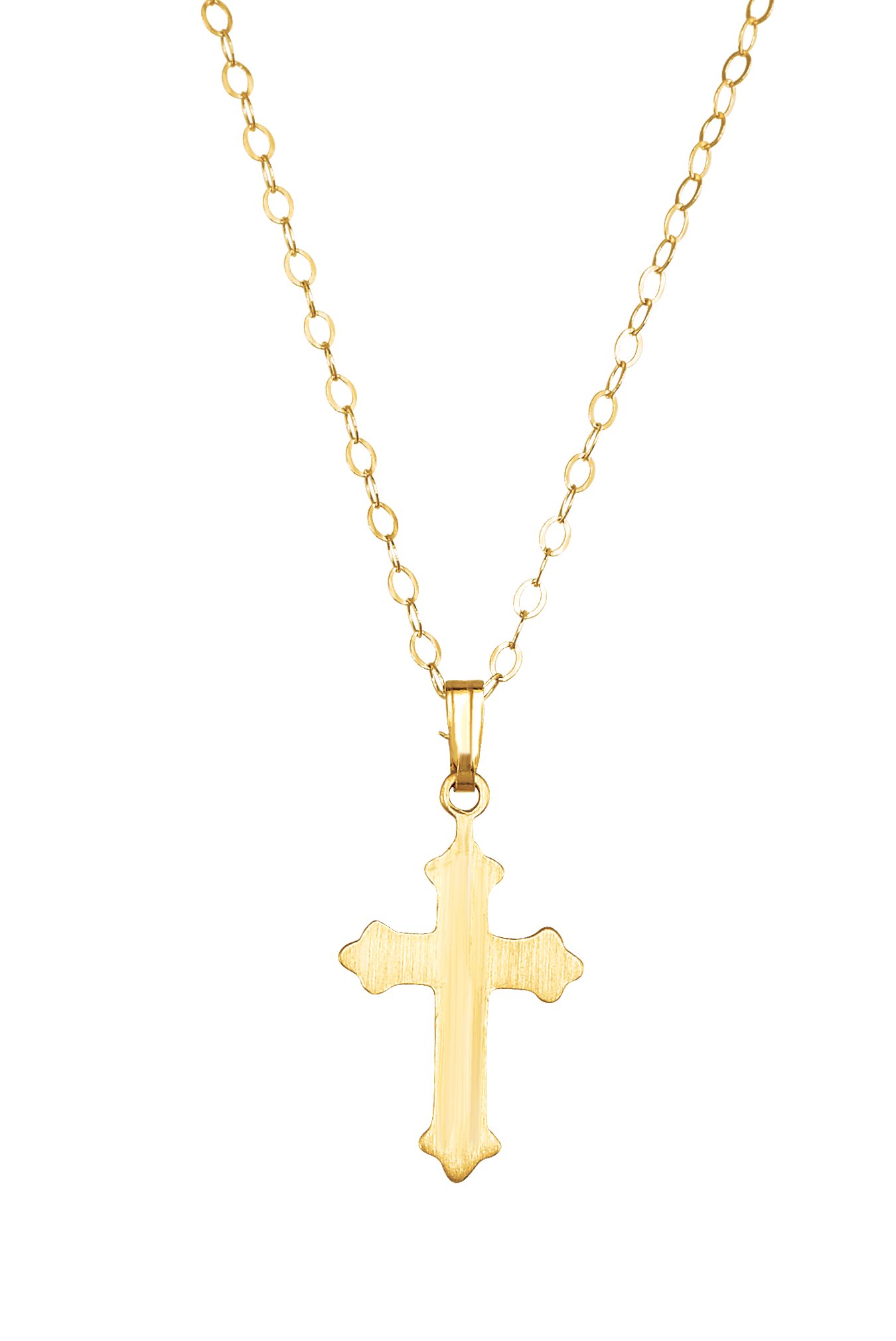 Children's Cross Pendant | 13 x 9 mm. 14K Yellow Gold. Sold with 15" cable chain. Comes with its own pad, box, tote bag and signature card.
