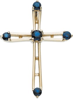 Cross Pendant with Genuine Sapphire | 26 x 20 mm. 14K Yellow Gold.