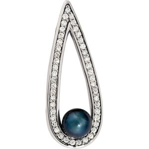 Cultured Black Pearl and Diamond Pendant 7mm .5 CTW Ref 748951