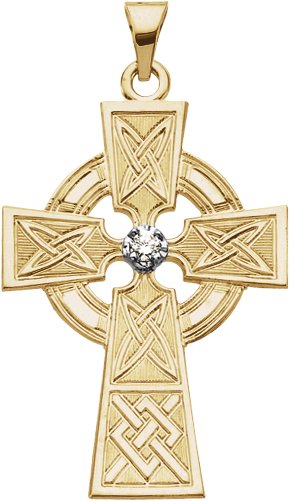 Diamond Cross | Height: 33.0mm; Width: 23.0mm; 1-2.5; .06 CT TW. Available in 14K Yellow/White and 14K White Gold.