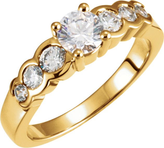 Set with side stones: 2ea Genuine Diamond G-H Round SI1 02.20 MM (02.11 - 02.23) Full Cut 2ea Genuine Diamond G-H Round SI1 02.70 MM (02.51 - 02.73) Full Cut 2ea Genuine Diamond G-H Round SI1 03.20 MM (03.11 - 03.23) Full Cut