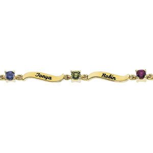 Engravable Bracelet for Mother with Names of Children Laser Engraved | May hold up to 7 round 3.5 mm gemstones. Available in Sterling Silver, 14K Yellow or 14K White Gold.
