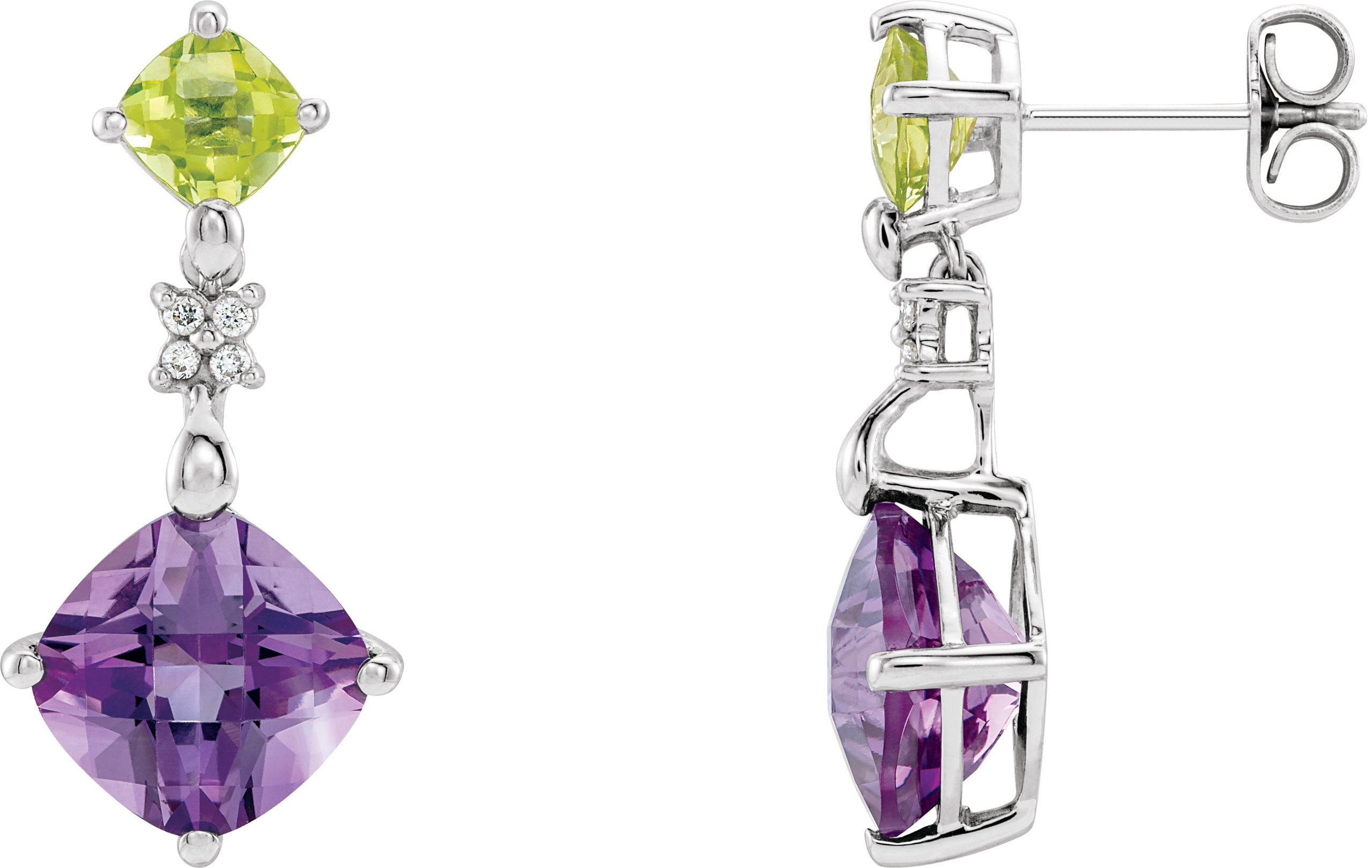 Genuine Amethyst, Genuine Peridot And Diamond Earrings | .06 Carat TW. Matching Pendant: 66083.