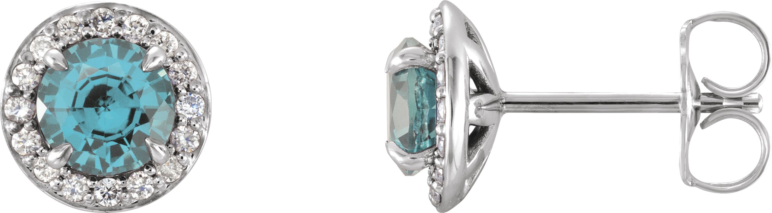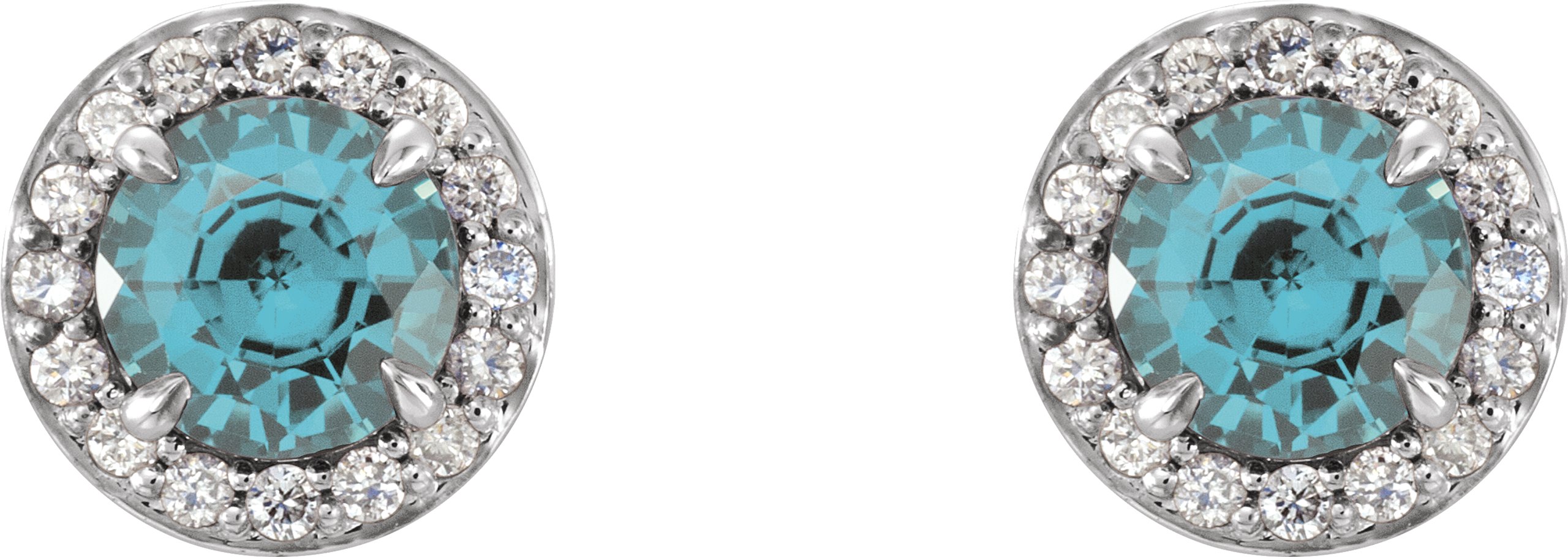 Description: Genuine Aquamarine And 1/6 Ctw Diamond Halo-Style Earrings
