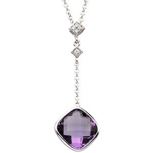 Genuine Checkerboard Amethyst & .04 Carat TW Diamond Necklace. 14K White Gold.