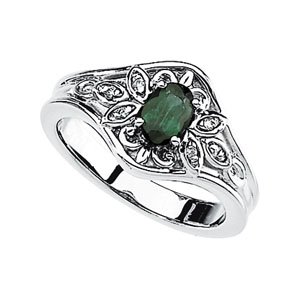 Genuine Emerald & Diamond Ring | 6 x 4 mm | .03 Carat TW. Ref 71173.