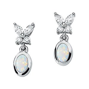 Genuine Opal Cabochon & Diamond Earrings | 6 x 4 mm | 1/2 Carat TW. Ref 83331.