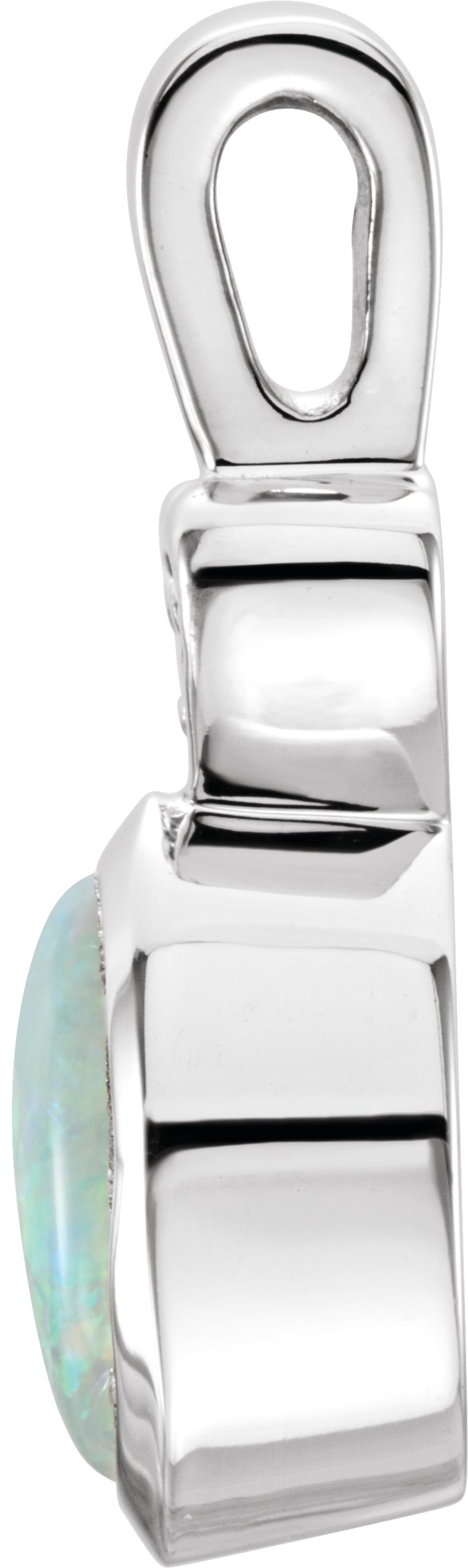 Genuine Opal Cabochon & Diamond Pendant | 7 x 5 mm | .02 Carat TW. 14K White Gold.