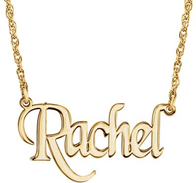 Gold Block Nameplate Necklace. Name with up to 8 characters can only be a single word, with the first letter capitalized.
