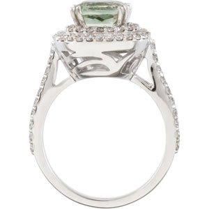 Green Quartz & Diamond Double Halo Style Ring