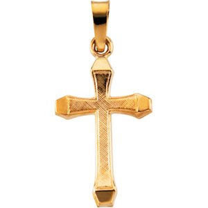 Hollow Design Cross Pendant | 17 x 11 mm. 14K Yellow Gold.