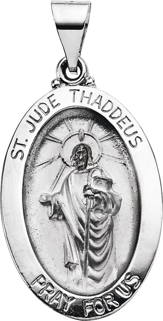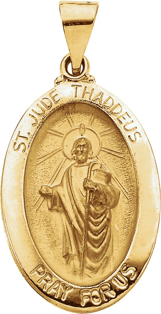 Hollow Oval St. Jude Medal | 23.25 x 16 mm. St. Jude is the patron saint of elderly maids, desperate situations and hospitals. Available in 14K Yellow or 14K White Gold.