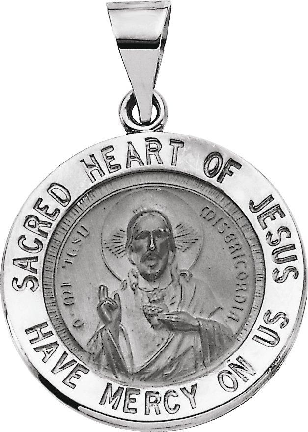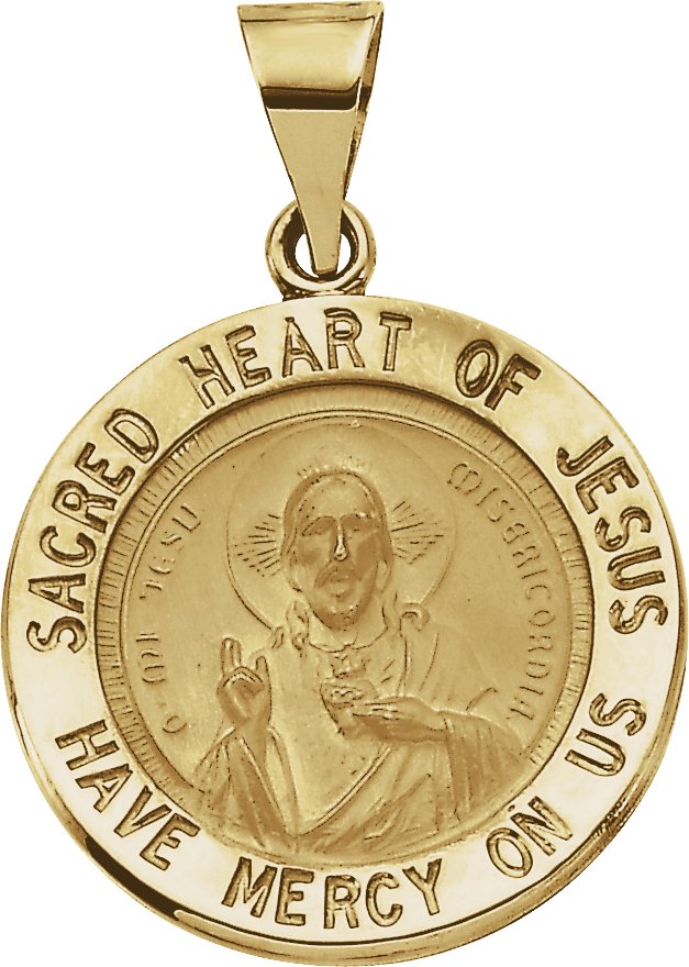 Hollow Round Sacred Heart of Jesus Medal | 18.5 mm. Available in 14K Yellow or 14K White Gold.