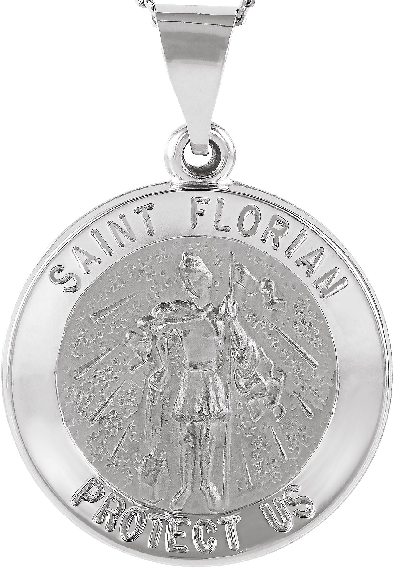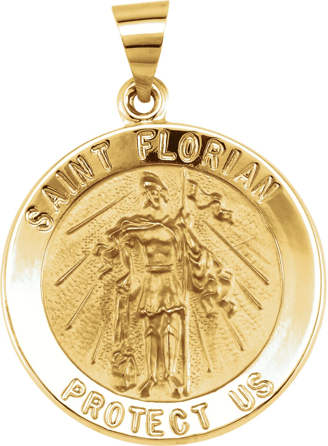 Hollow Round St. Florian Medal | 18.25 mm. St. Florian is the patron saint of firefighters.