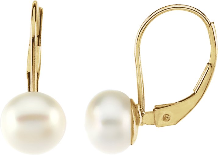 Lever Back Earrings | 7-7.5 mm Pearls. 14K Yellow Gold.