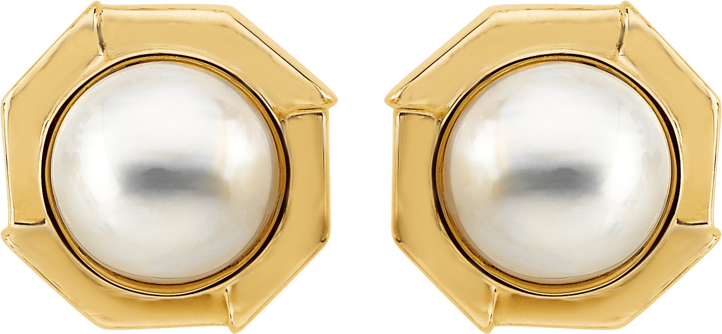 Mabe Cultured Pearl Earrings. Set with 2ea 12.00 MM Standard Mabe, Cultured Pearl - Round Mabe Mabe Assembled; WHITE