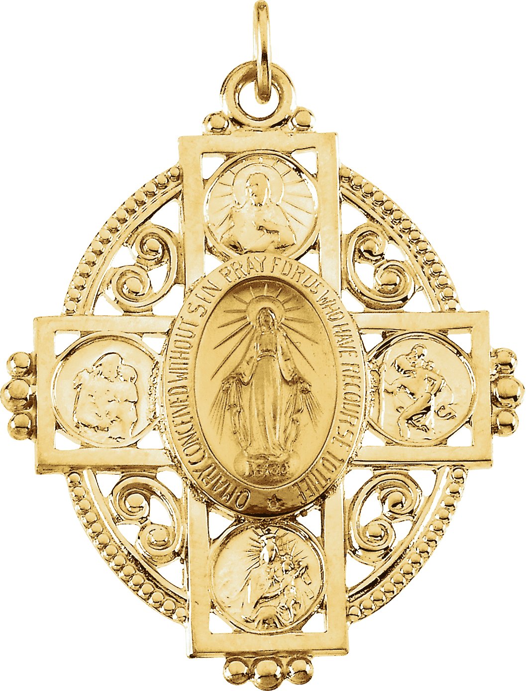 Miraculous Medal | 35 x 28 mm. 14K Yellow Gold.