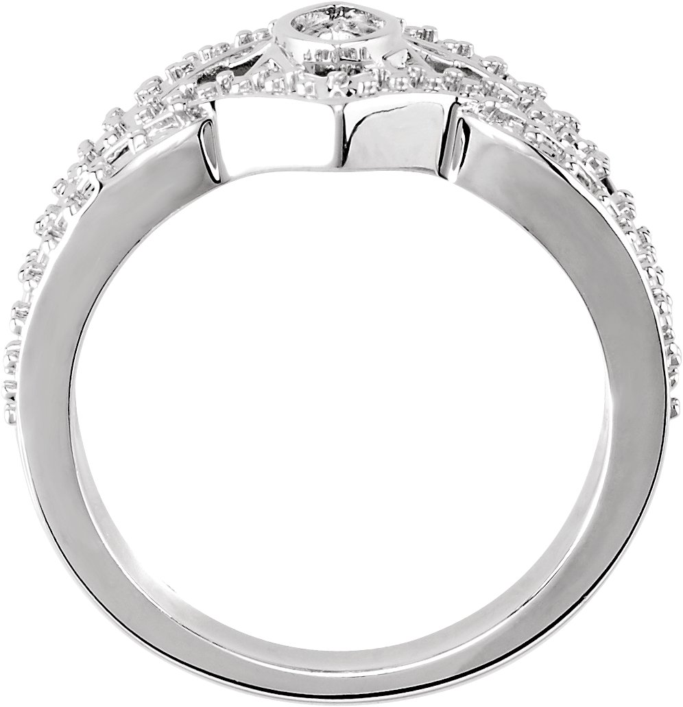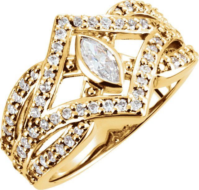 Set with: 1ea Charles & Colvard™ Created Moissanite - Marquise 06.00x03.00 MM Very Good Faceted 4ea Genuine Diamond G-H Round SI1 01.00 MM (01.00 - 01.15) Full Cut 10ea Genuine Diamond G-H Round SI1 01.50 MM (01.41 - 01.55) Full Cut 58ea Genuine Diamond G-H Round SI1 01.30 MM (01.24 - 01.40) Full Cut