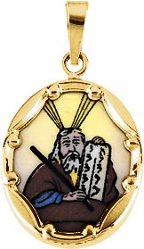 Moses Hand-Painted Porcelain Medal | 17 x 13.5 mm. 14K Yellow Gold.