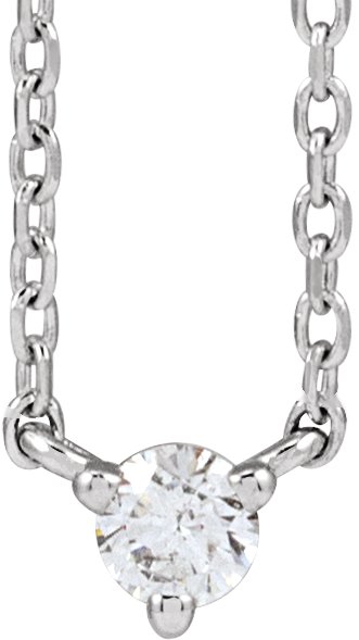 Platinum 1/10 CT Natural Diamond 3-Prong 18" Necklace