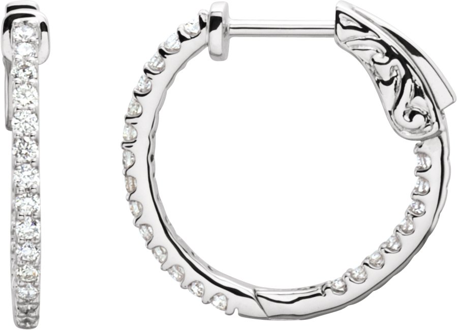 Platinum .50 CTW Diamond Inside Outside 19 mm Hoop Earrings