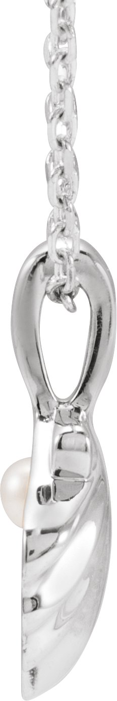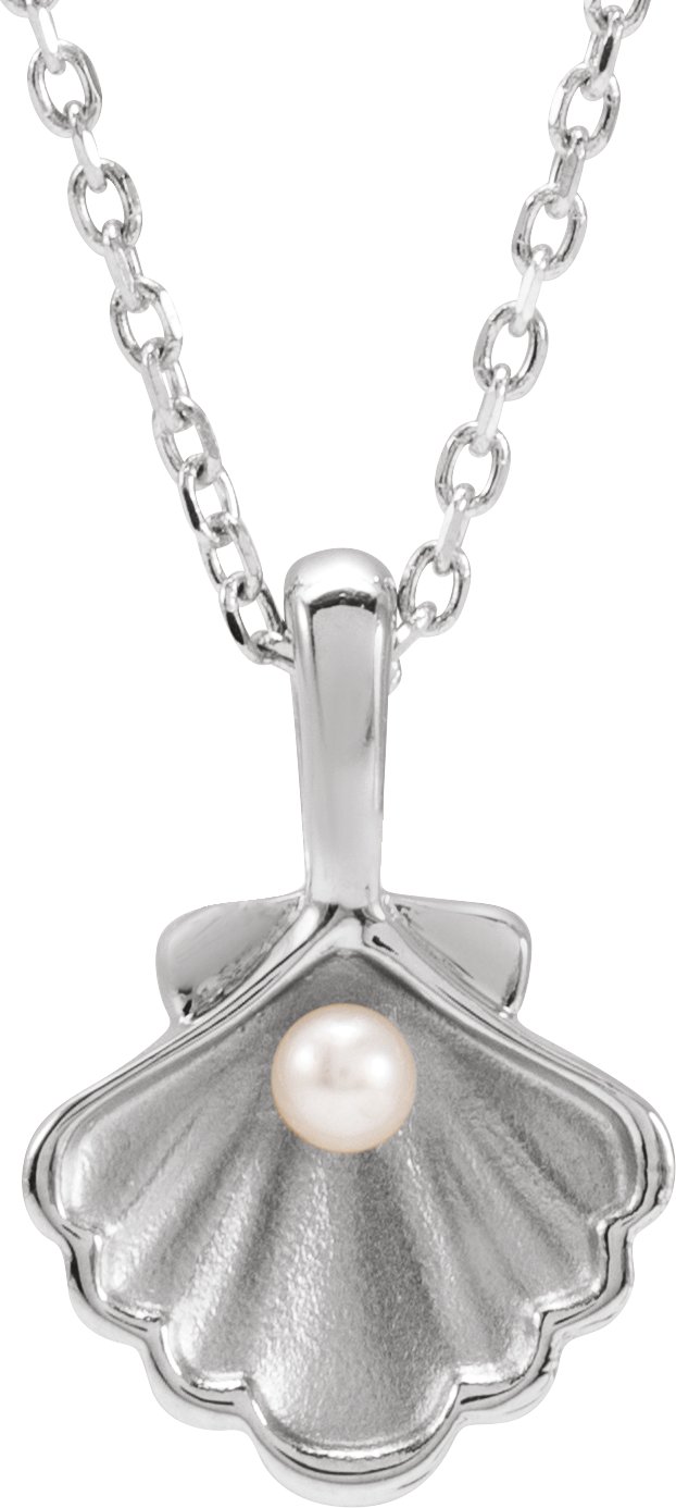 Platinum 1-Stone Cultured White Seed Pearl Family Shell 16-18" Necklace