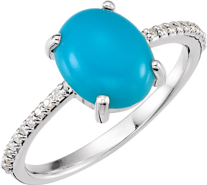 Platinum 10x8 mm Oval Cabochon Turquoise & 1/10 CTW Diamond Ring