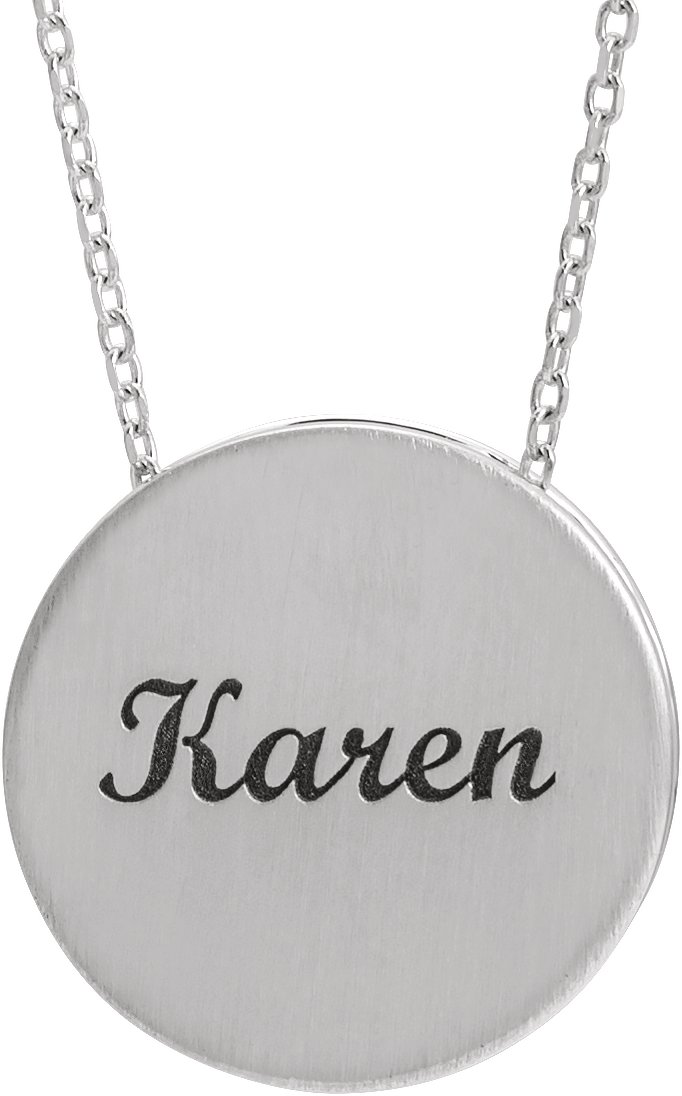 Description: Engravable Disc Necklace With Scroll Detail