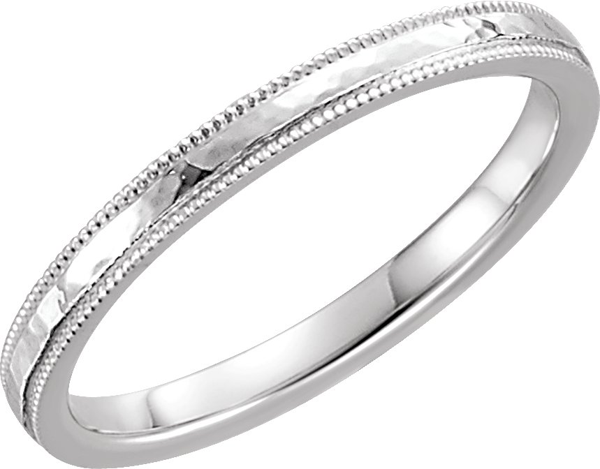 Platinum 2 mm Flat Band with Hammer Finish and Milgrain Size 11 Ref 11978885