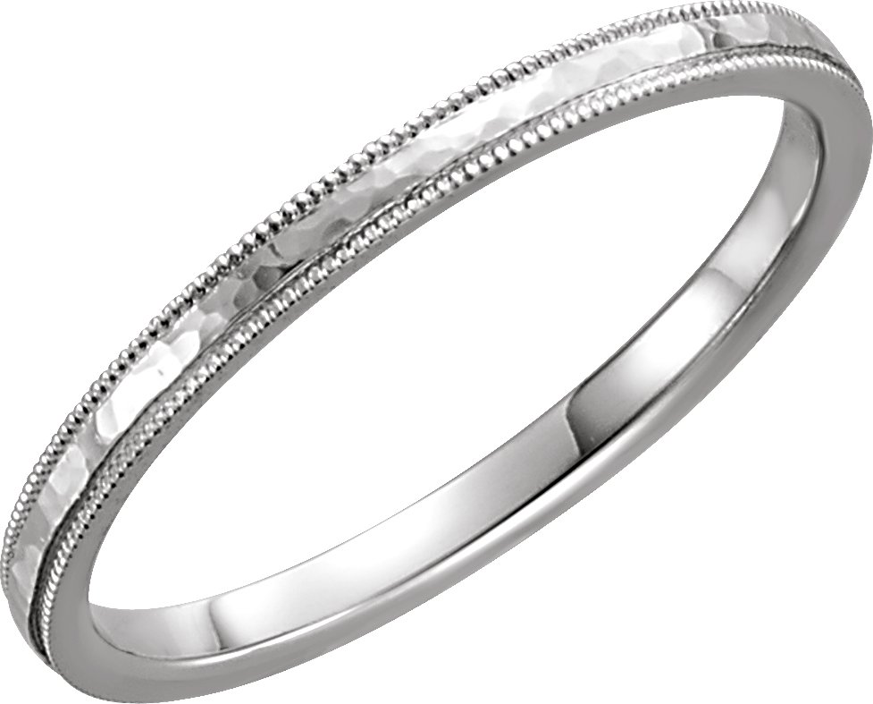 Platinum 2 mm Flat Band with Hammer Finish and Milgrain Size 6 Ref 11978871