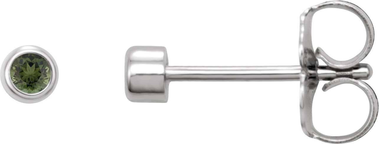 Platinum 2 mm Round Green Tourmaline Micro Bezel-Set Earrings