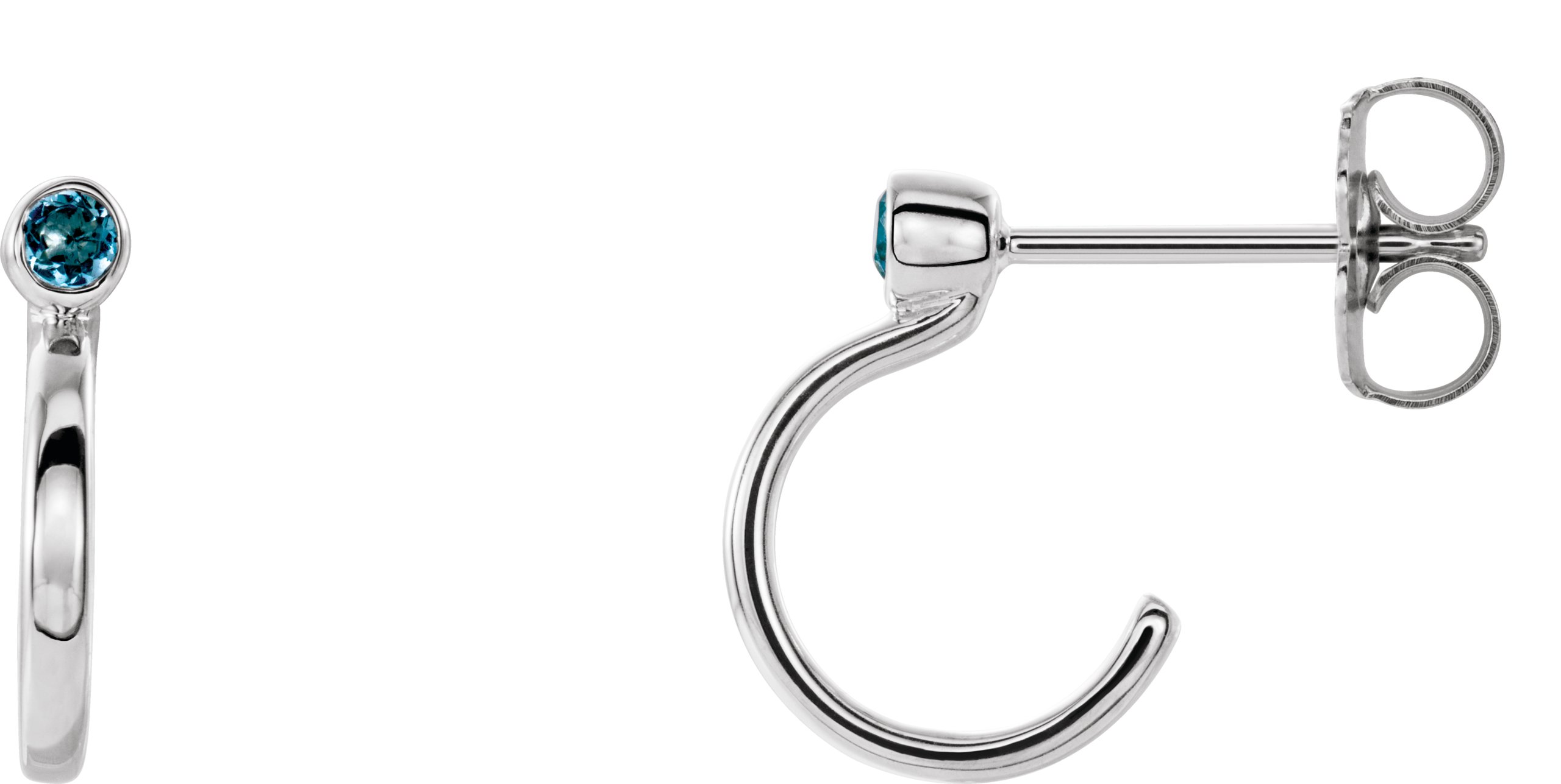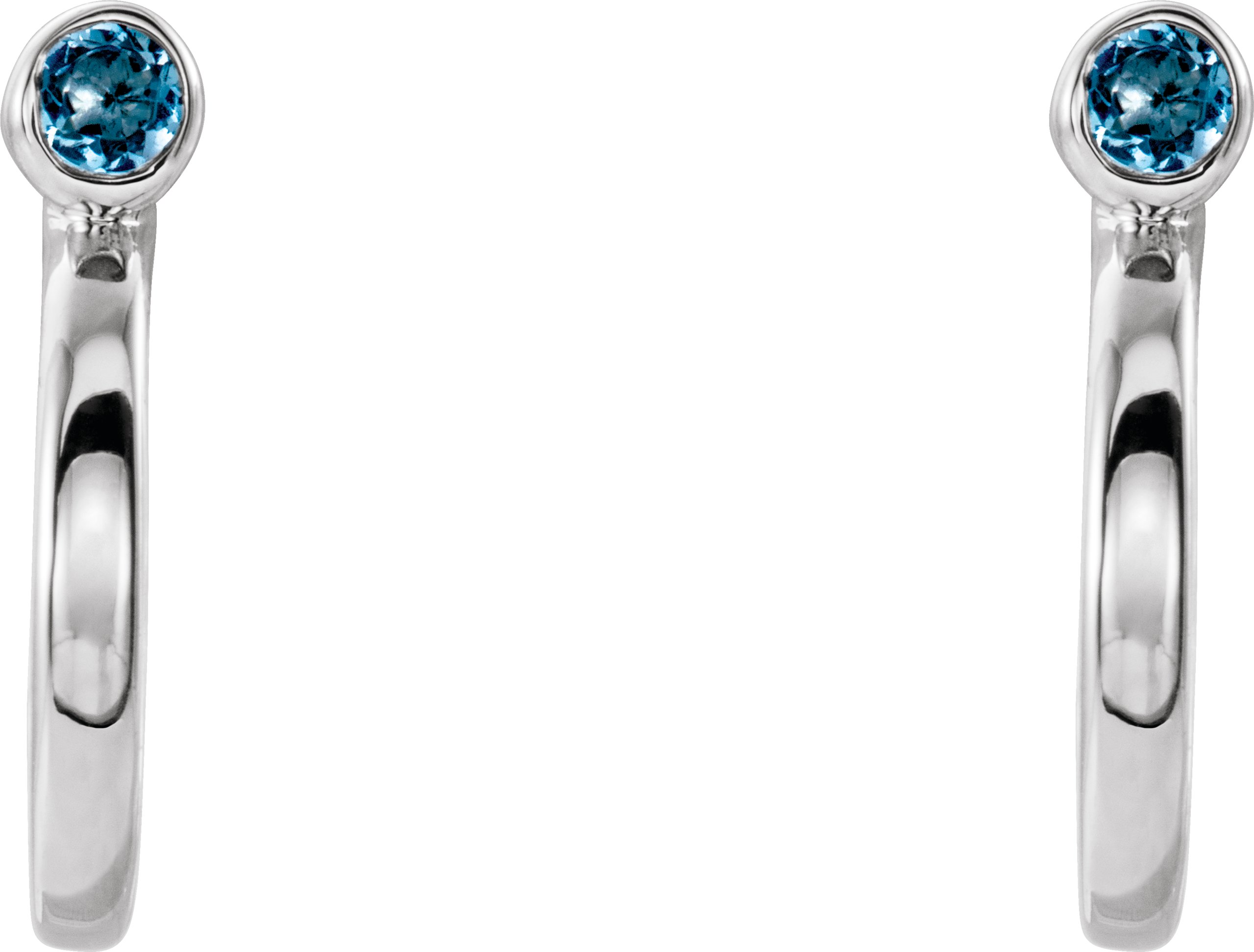 Platinum 3 mm Round Aquamarine Bezel Set Hoop Earrings