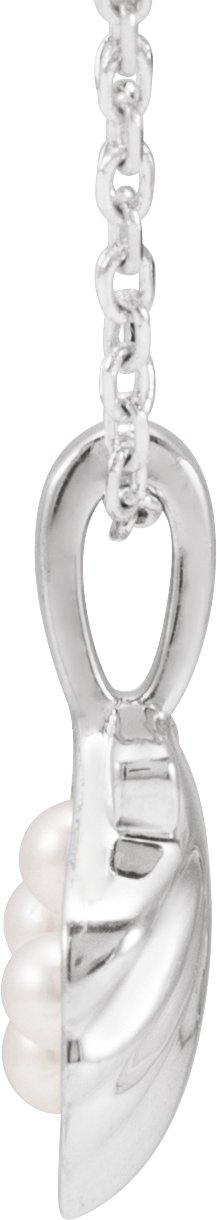Description: Cultured White Seed Pearl Family Shell Necklace