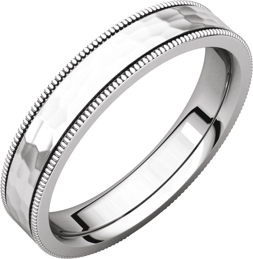 Description: Flat Comfort-Fit Milgrain Satin And Hammer Finish