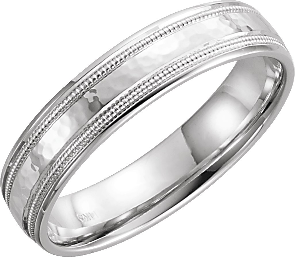 Description: Flat Edge Comfort-Fit Milgrain Band W/Hammer Finish