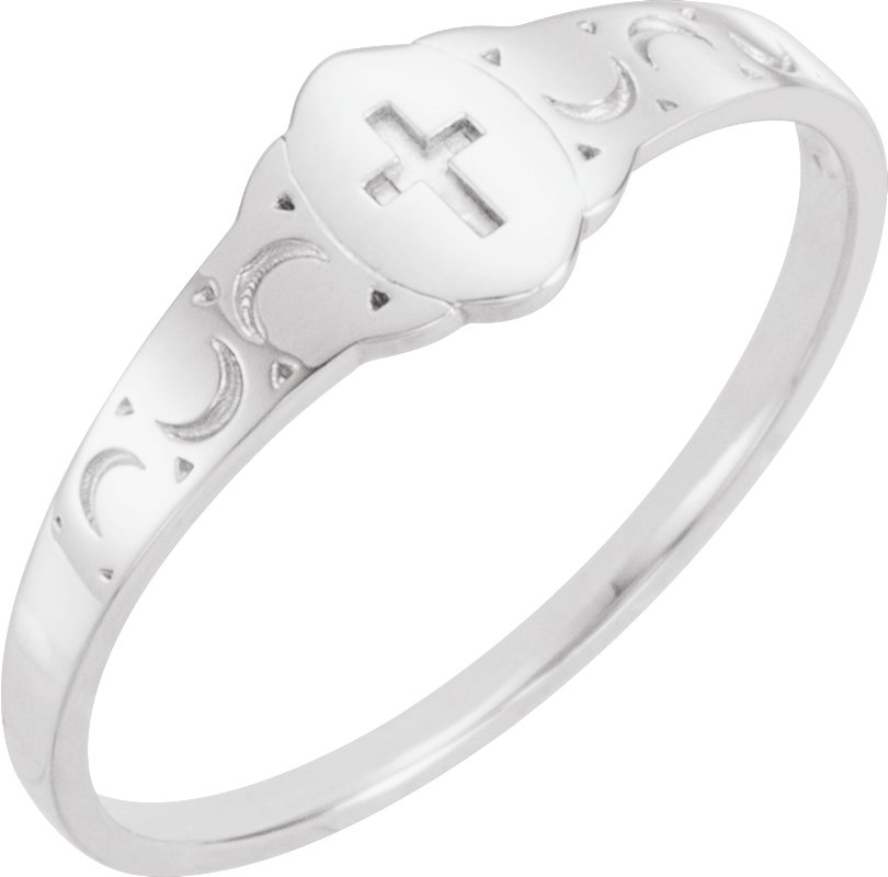 Platinum 5x3 mm Oval Youth Cross Signet Ring