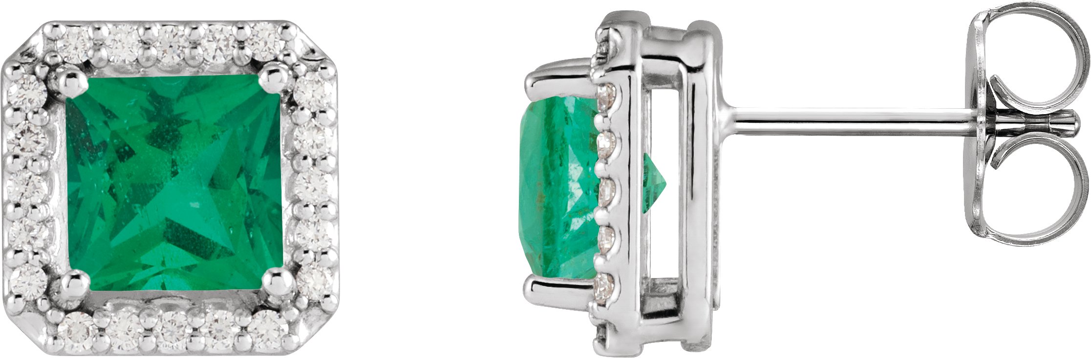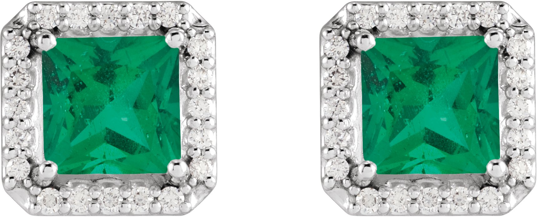 Platinum 5x5 mm Lab Grown Emerald 0.17 CTW Natural Diamond Halo Style Earrings Ref 19608836