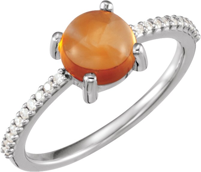 Platinum 7 mm Round Cabochon Citrine & 1/10 CTW Diamond Ring
