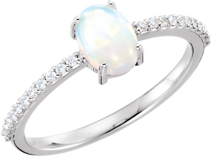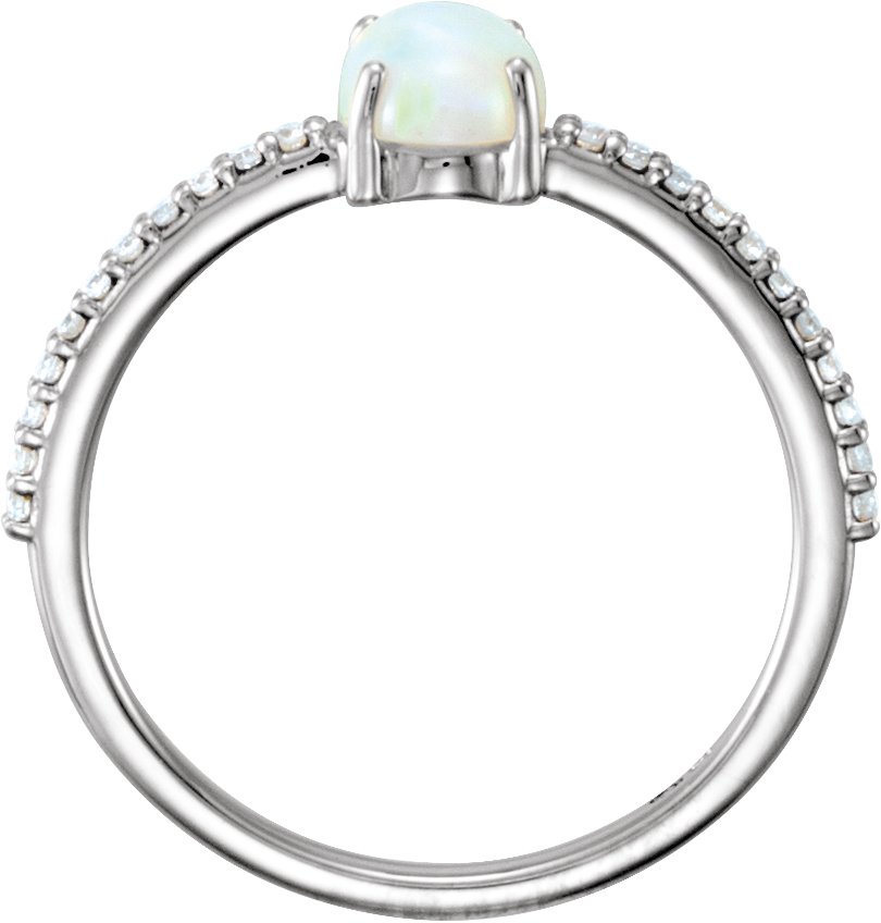 Platinum 7x5 mm Oval Cabochon Opal & 1/10 CTW Diamond Ring