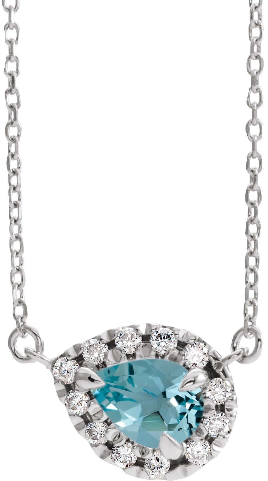 Platinum 7x5 mm Pear Blue Zircon & 1/6 CTW Diamond 16" Necklace Ref. 16213450