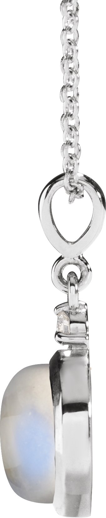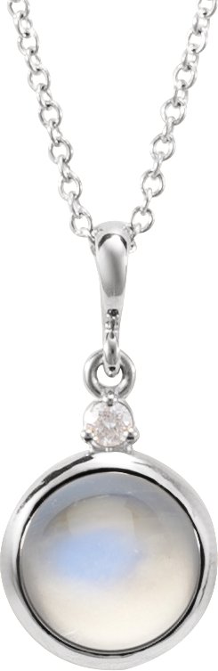 Platinum 8 mm Natural Rainbow Moonstone & .03 CT Natural Diamond Cabochon 16-18" Necklace